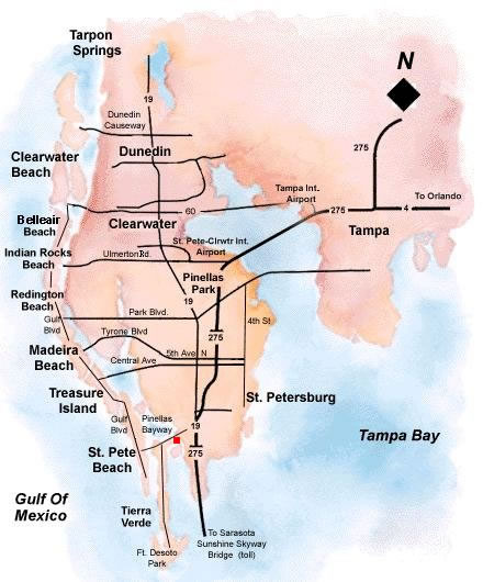 Take I-275 to Pinellas Bayway exit (Exit 17 - Old Exit 4). Go west about 1/2 mile, then through the toll gate (costs 50ยข).